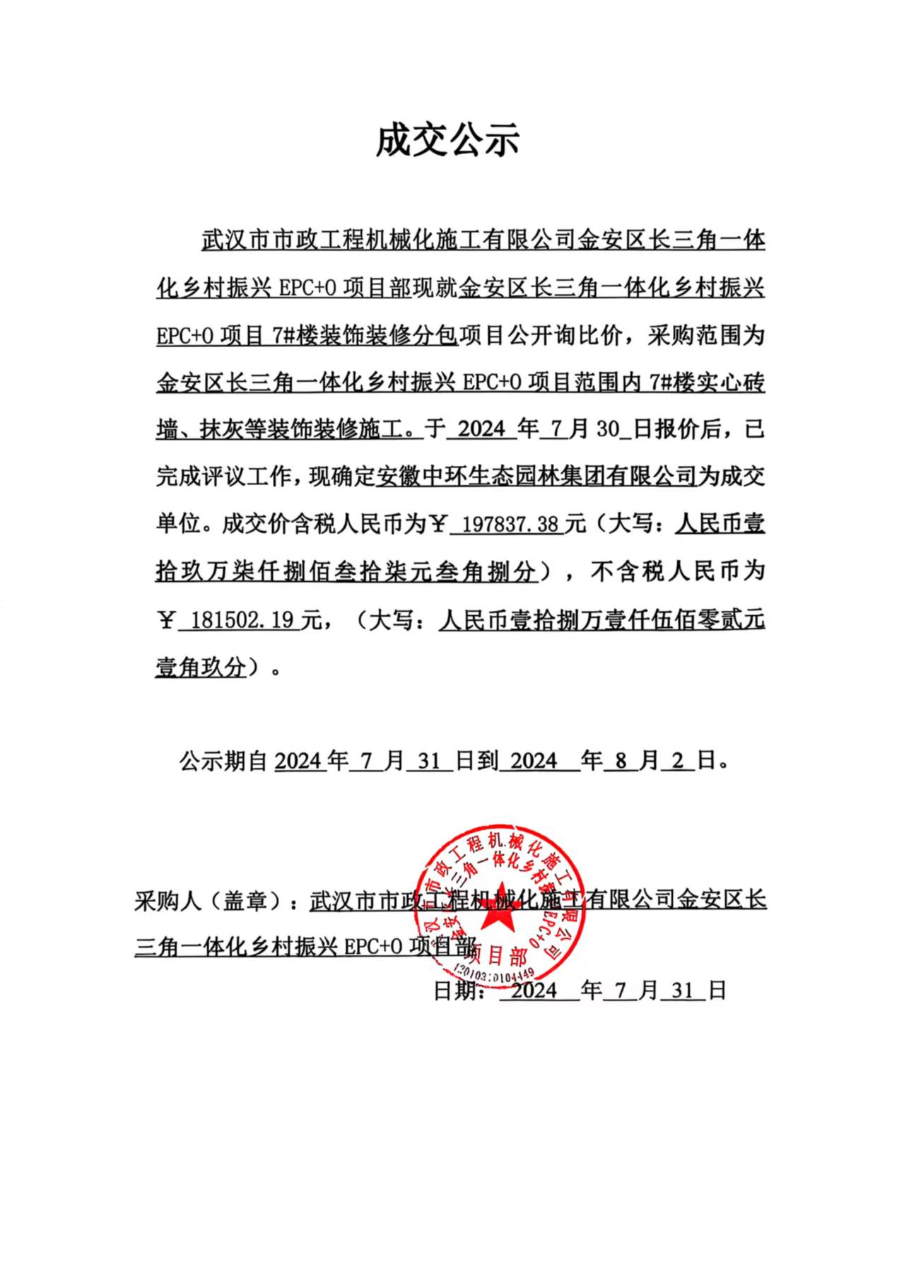 金安區(qū)長三角一體化鄉(xiāng)村振興EPC+O項目7#樓裝飾裝修分包成交公示