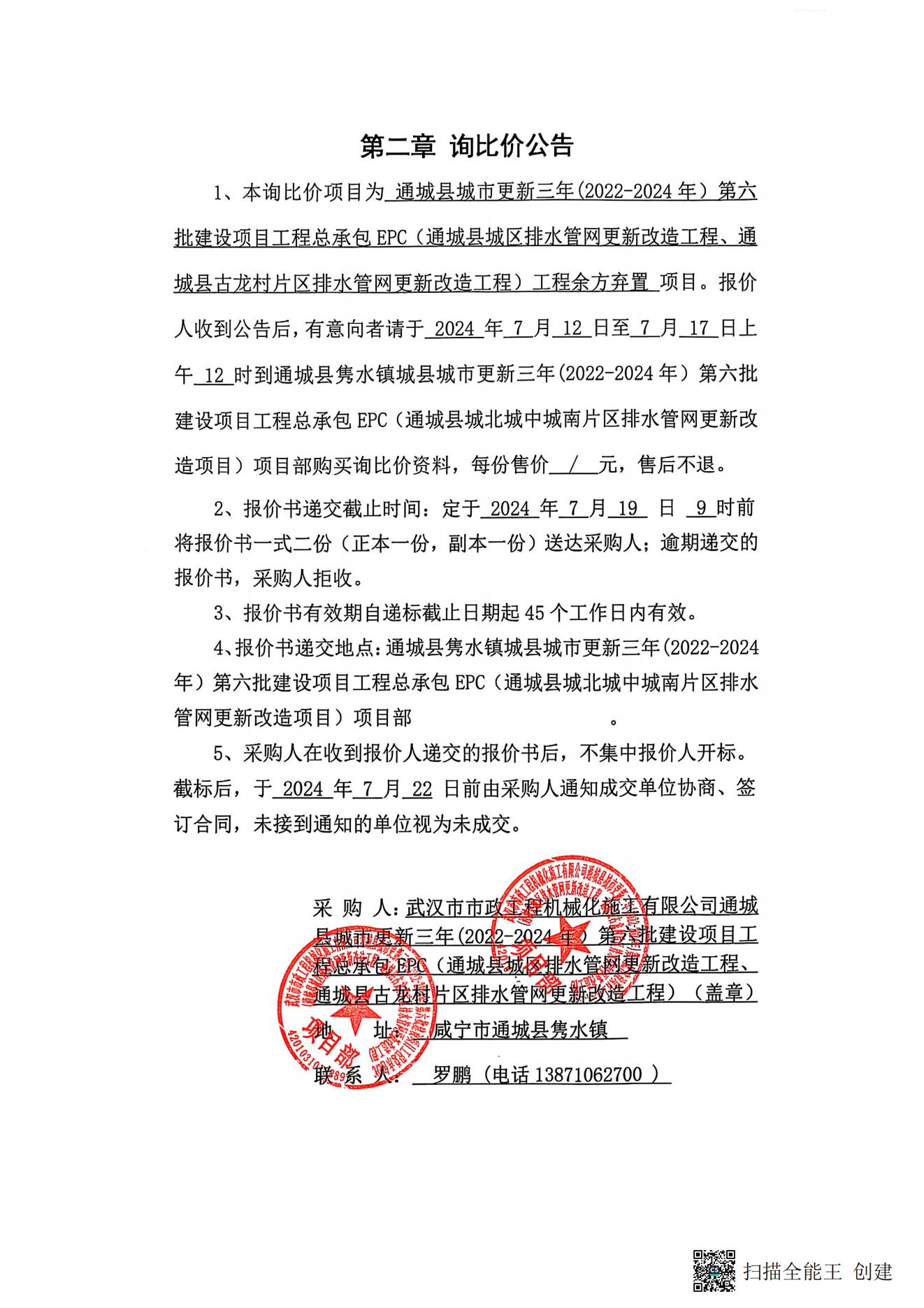 通城縣城市更新三年(2022-2024年)第六批建設(shè)項(xiàng)目工程總承包EPC(通城縣城區(qū)排水管網(wǎng)更新改造工程、通城縣古龍村片區(qū)排水管網(wǎng)更新改造工程)工程余方棄置采購詢價公告