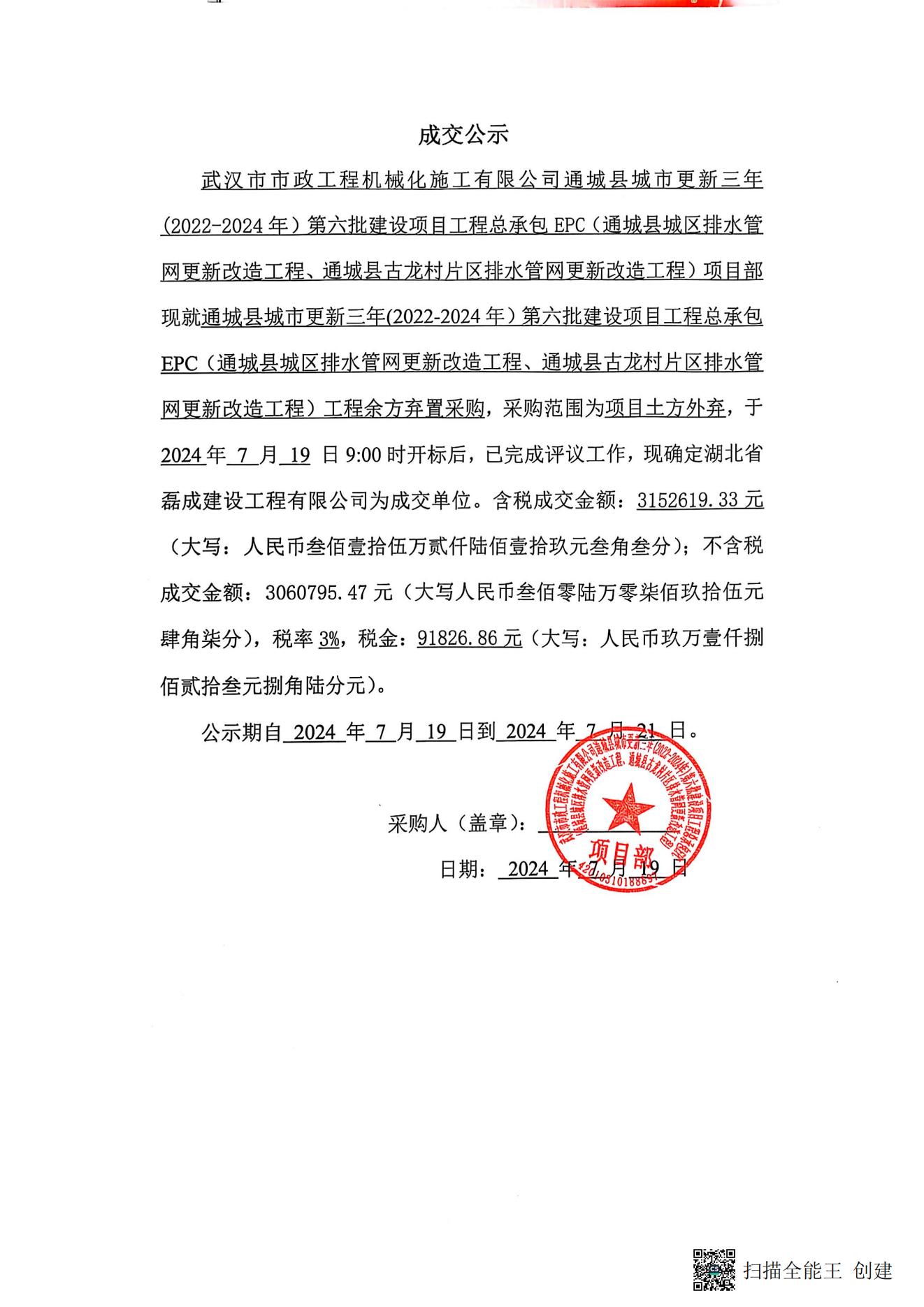 通城縣城市更新三年(2022-2024年)第六批建設(shè)項目工程總承包EPC(通城縣城區(qū)排水管網(wǎng)更新改造工程、通城縣古龍村片區(qū)排水管網(wǎng)更新改造工程)工程余方棄置采購成交公示